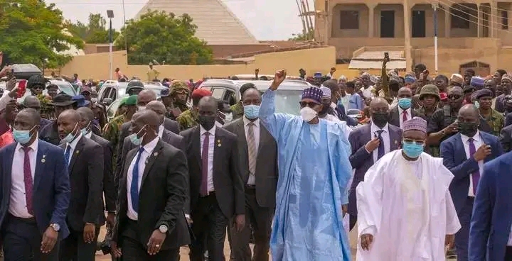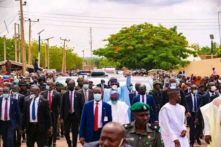 A yaune shugaba Buhari ya gudanar da sallar idi a mahaifarshi ta Daura, inda shugaban ya yi tattaki a kasa domin gaisawa da jama’a har zuwa gida.